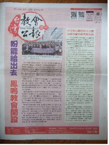 The Taiwan Church News (TCN), the first newspaper in Taiwan founded by the British missionary Mr. Thomas Barclay in 1885, published my father’s work in the 1st issue of this year 2025(3801) in the paper form (please see the above photos) and the e-form: https://tcnn.org.tw/archives/227593.